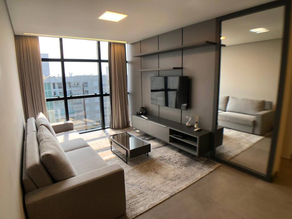 BAIRRO ATLÂNTIDA!!!! Amplo apartamento de 01 dormitório + banheiro social. Ampla sala de estar, sala de jantar, cozinha americana com bancada e área de serviço integrada. Imóvel esta completamente Mobiliado e Decorado, 53,06m² de área privativa, conta com uma vaga de garagem para carro, alto padrão construtivo, rebaixo em gesso, piso porcelanato, abertura em sistema inteligente digital. Edifício de altíssimo padrão, Hall de entrada Mobiliado e Decorado, sistema de segurança, 06 elevadores, Infraestrutura de Resort, Ampla Piscina para adultos e outra para crianças, playground externo, bar aberto, deck para descanso, piscina térmica, sauna molhada, 06 salões de festas, Brinquedoteca, sala de jogos e Academia, todos os espaços sociais são mobiliado e equipados. Venha conhecer esse lindo empreendimento!