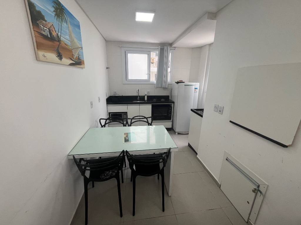Excelente apartamento de 01 dormitório, novo, mobiliado, living integrados em 02 ambientes estar e jantar, cozinha americana, banho social, duas orientações solares, churrasqueira, espera p/ splits, água quente, gás central, hidrômetros individuais e uma vaga privativa. Edifício de alto padrão, fachada 100% revestida, 02 elevadores, hall decorado, porteiro e portão eletrônicos, zeladoria, tudo isso apenas uma quadra do mar!