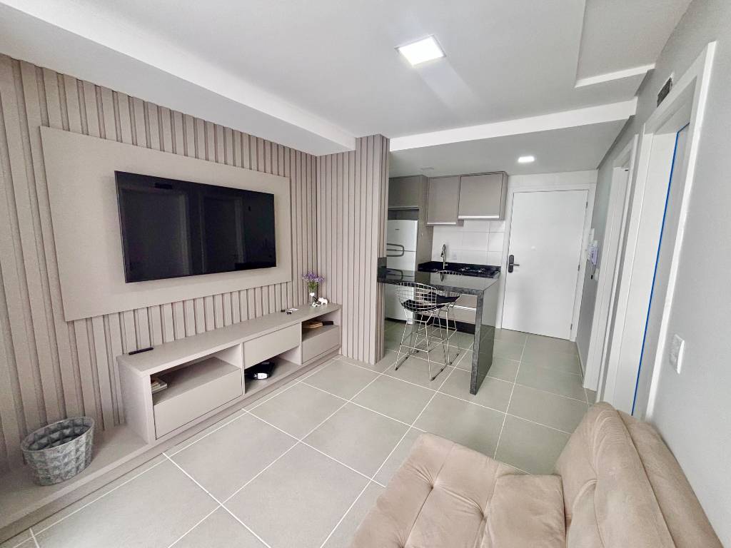 Apartamento de 1 dormitório, totalmente mobiliado e decorado, com móveis sob medida, banheiro social, sala de estar e jantar, cozinha americana e box de estacionamento para 1 carro. Edifício novo, com Hall de entrada decorado, portão e porteiro eletrônico. Localizado a 1 quadra do mar. Apartamento com documentação completa para financiamento bancário.