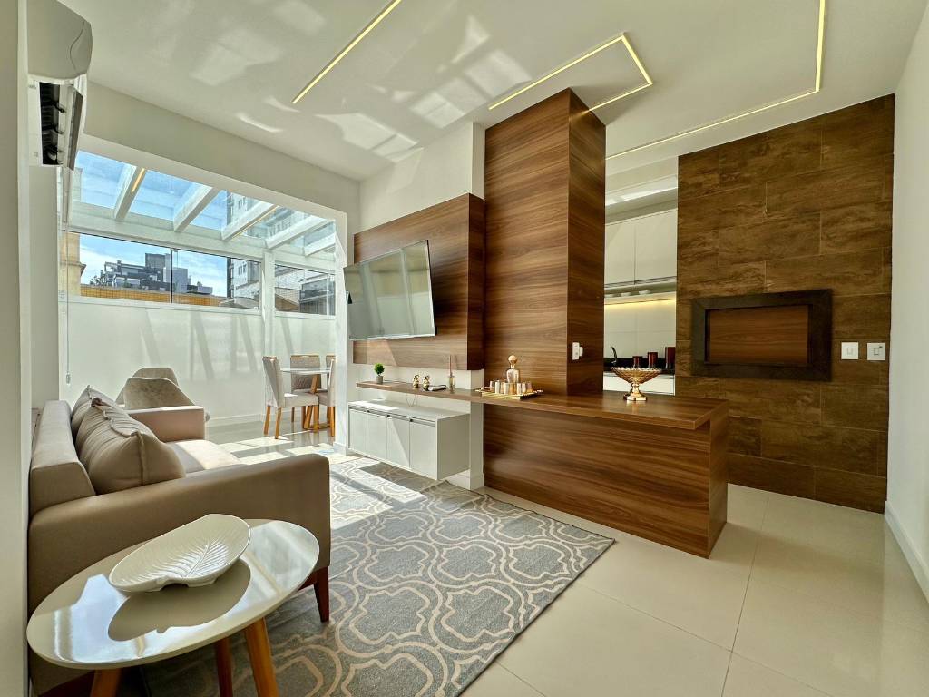 Apartamento com 87,41m² de área privativa, finamente mobiliado & decorado, terraço privativo, posição solar Norte, são dois dormitórios, uma suíte, banheiro social, sala de estar e jantar, cozinha, churrasqueira e área de serviço individual.