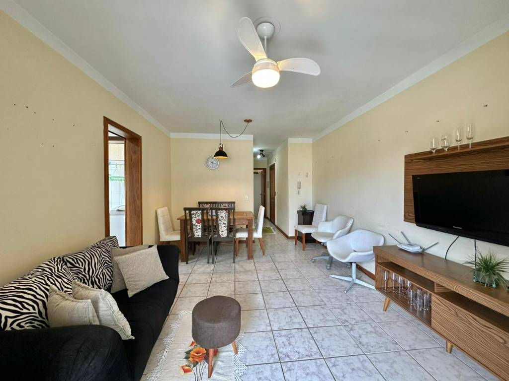 Composto por uma suíte mais e banho social, totalmente mobiliado, living em dois ambientes e ainda possue uma sacada com churrasqueira de frente.