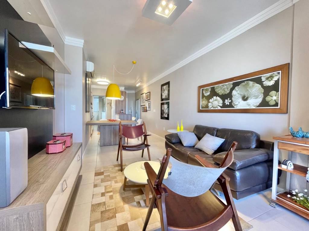 Apartamento à venda em frente à Praça Flávio Boianovisk, com vista eterna para o mar e serra Finamente mobiliado, com sacada com churrasqueira, sala de estar e jantar integradas, cozinha americana com lavanderia separada, 2 dormitórios, sendo 1 deles suíte, + banheiro social e vaga dupla de garagem térrea. Edifício em localização privilegiada.