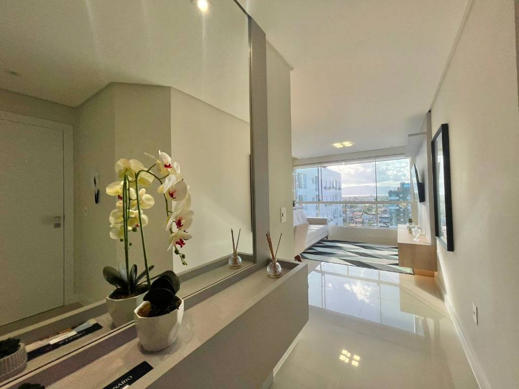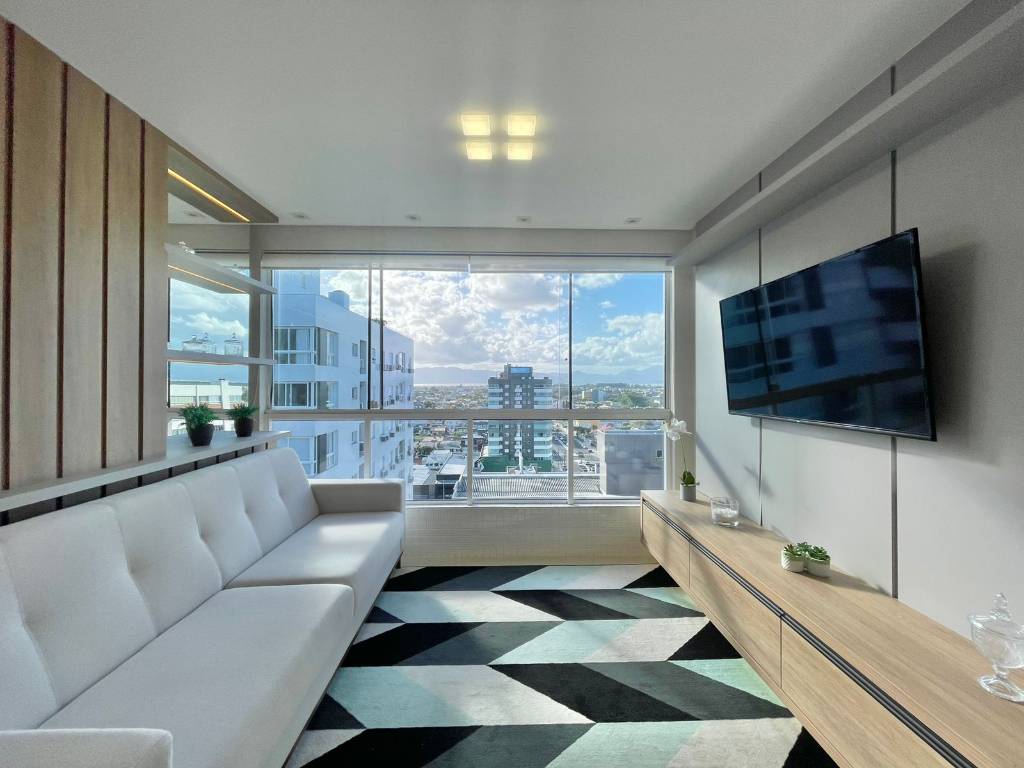 Apartamento com duas suítes, sacada de frente com vista liberada, MOBILIAD E DECORADO, cozinha americana, pedras em granito, área de serviço, banheiro social e garagem para 1 carro. Apartamento em andar alto, muito bem ventilado e com iluminação direta em todas as peças. Edifício localizado na esquina da Av. Ubirajara, a poucas quadras do mar. Apartamento pronto para morar. Consulte preço especial a vista.