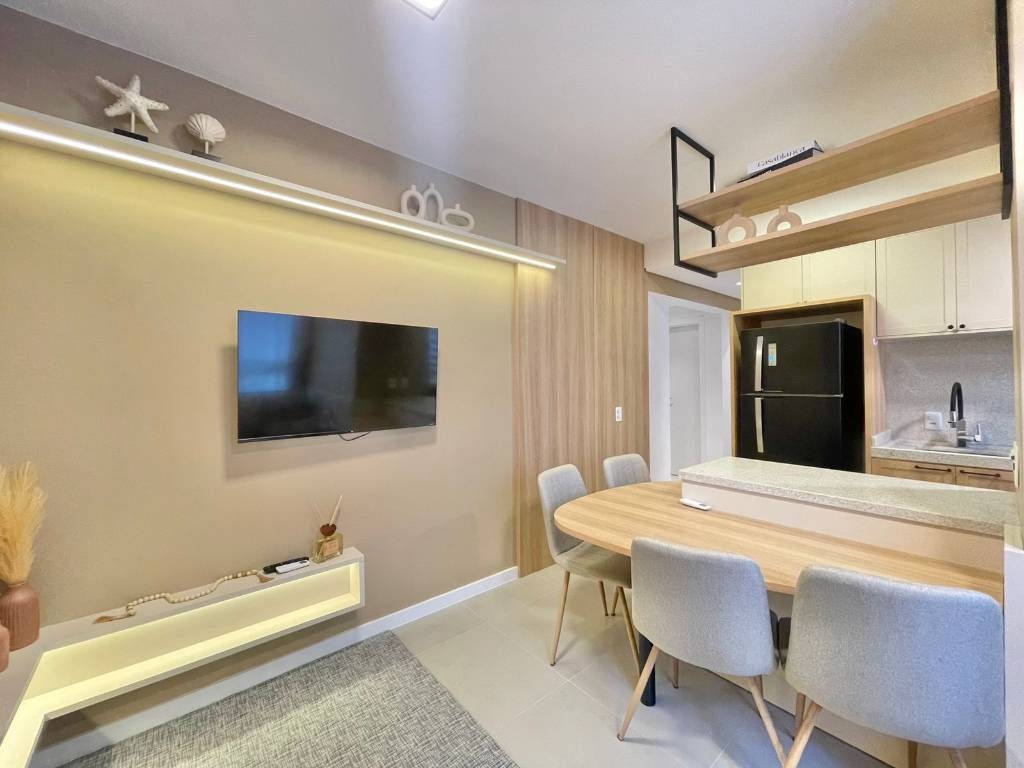 Conta com 2 dormitórios climatizados sendo 01 suíte, living amplo, cozinha americana com churrasqueira e vaga de garagem.