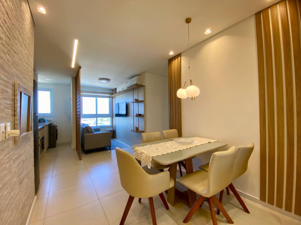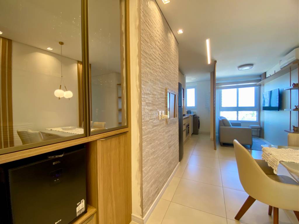 Conta com 2 dormitórios, sendo 1 suíte, banheiro social, living integrado de estar e jantar, cozinha totalmente equipada e área de serviço.