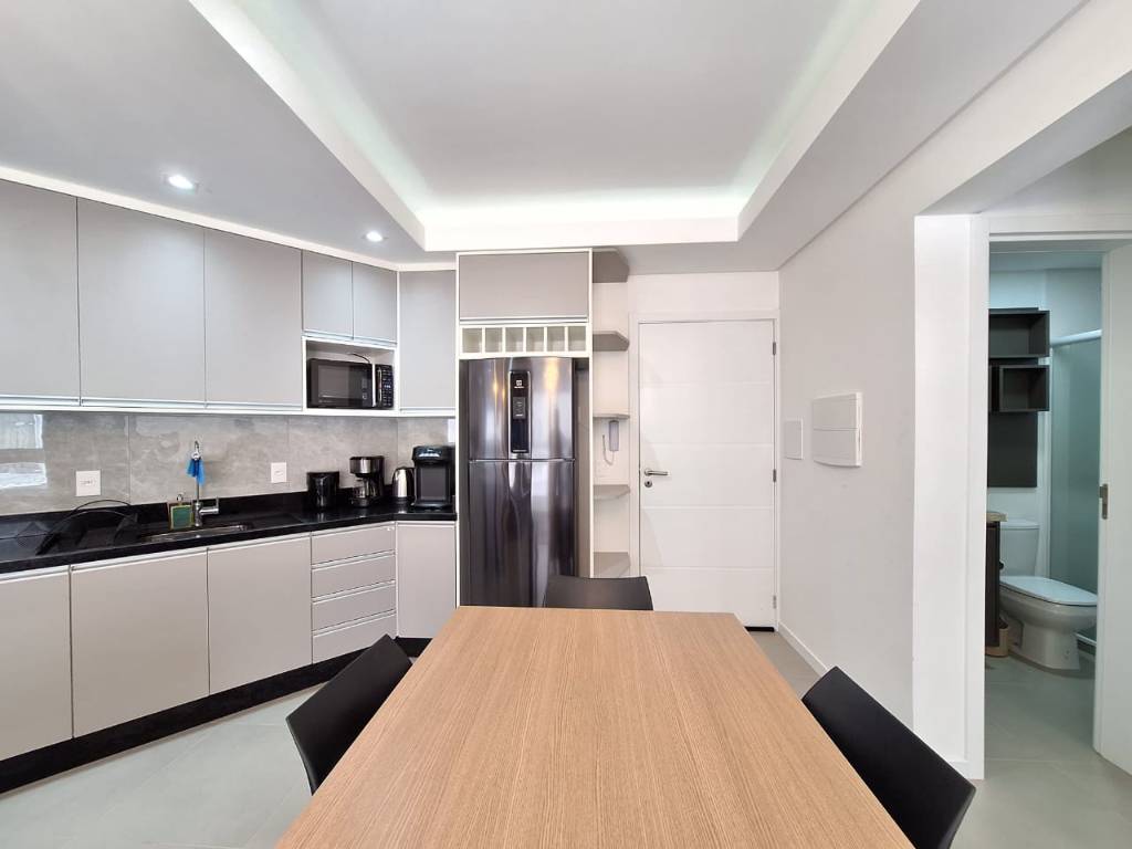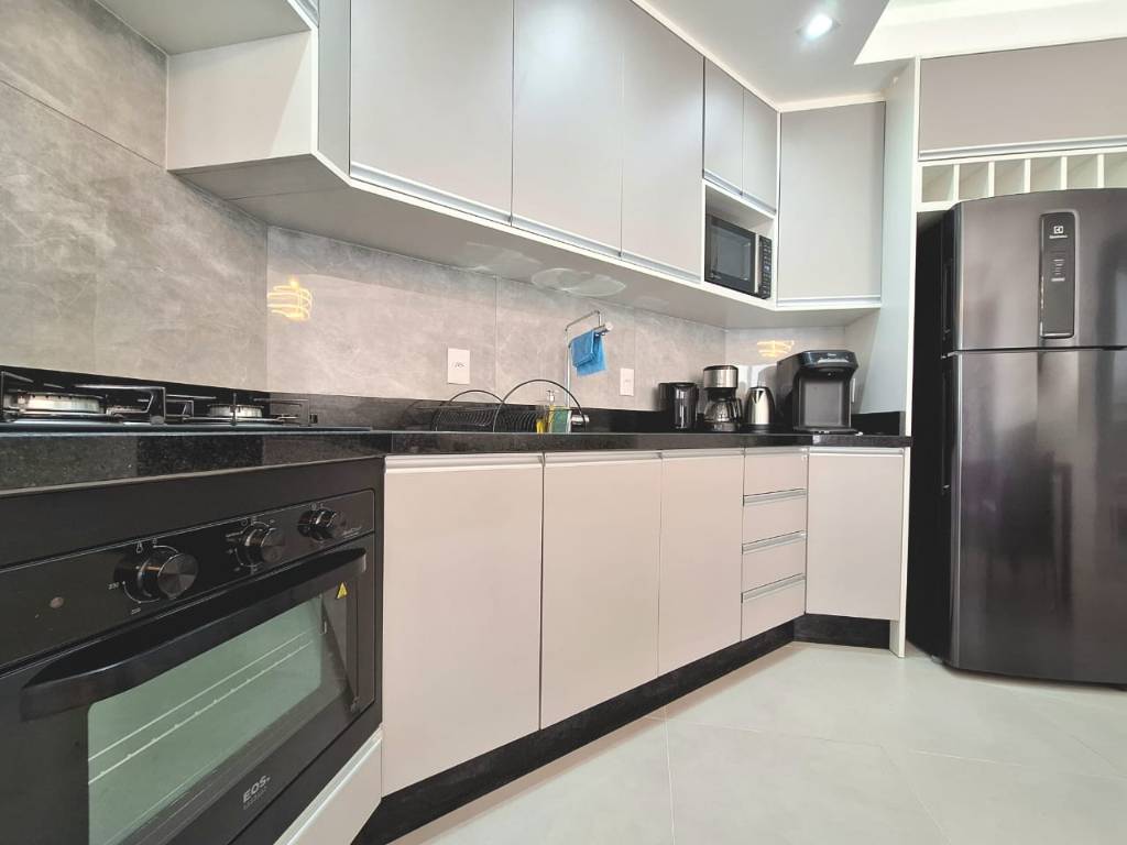 Apartamento de 02 dormitórios (01 suíte), todo mobiliado, pronto para morar ou veranear, living estar e jantar, cozinha estilo americana, churrasqueira, área de serviço, água quente instalada, gás central, hidrômetros individuais, ar split instalado, banheiro social e um amplo box de garagem.