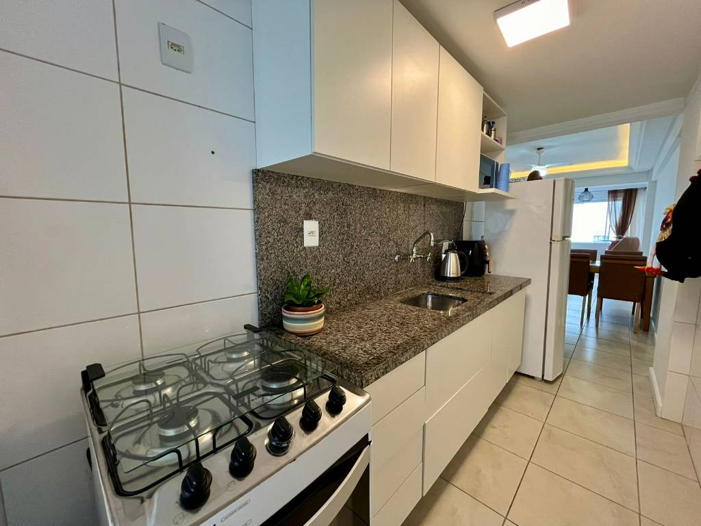 Apartamento de dois dormitórios, sendo um deles suíte, banheiro social, quartos bem amplos no qual cabe uma cama de casal e mais uma cama de solteira em cada quarto, sala de estar e jantar com sacada integrada e churrasqueira, cozinha e área de serviços.