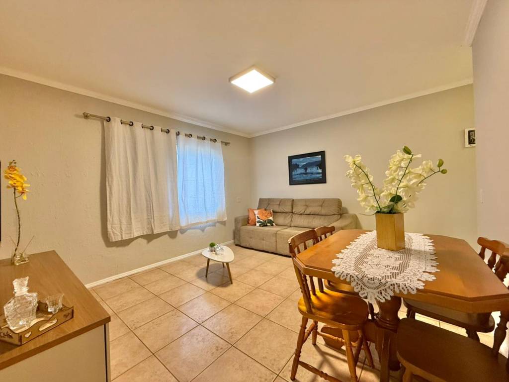 O imóvel é composto por dois dormitórios, amplo living integrado em dois ambientes (estar e jantar), proporcionando um espaço agradável para convivência e recepção. Conta ainda com cozinha funcional, banheiro social e lavabo, oferecendo mais praticidade no dia a dia.