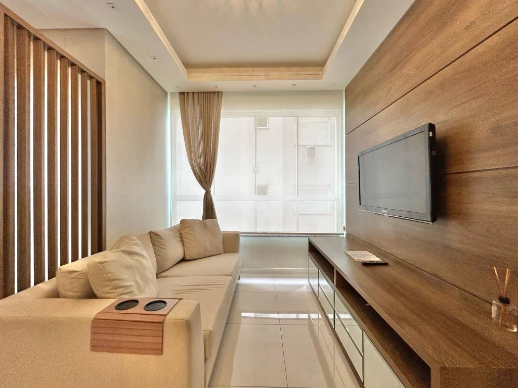 Apartamento de 2 dormitórios (1 suíte), living 2 ambientes, totalmente mobiliado e decorado, pronto para usar com todos eletros e splits instalados, cozinha equipada, área de serviço, churrasqueira e box de estacionamento coberto para 1 carro. Edifício com elevador, portão e porteiro eletrônico. Localizado a 2 quadras do mar e próximo a 2 praças.