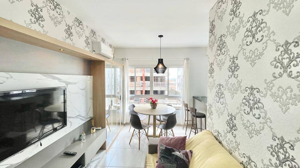 BAIRRO ZONA NOVA!!! Apartamento com 02 quartos, sendo uma suíte + banheiro social, living dois ambientes, sala de estar, sala de jantar, cozinha americana com bancada e área de serviço integrada. Imóvel todo Mobiliado e Equipado, box para carro, posição solar Oeste/ Norte, split instalado em todas as peças, água quente e gás central. Edifício 100% pastilhado, hall de entrada mobiliado, zeladoria permanente, portão e portaria eletronica. Localizado no Bairro Zona Nova, À 01 quadra do mar!!!