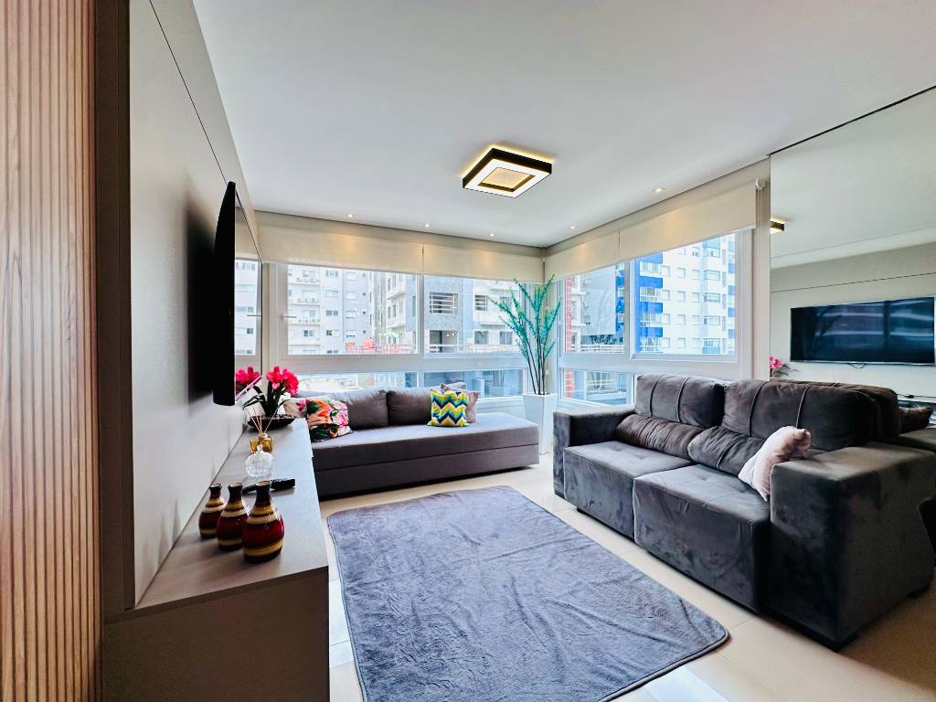 O imóvel conta com três dormitórios, sendo uma suíte, está totalmente mobiliado e pronto para ocupação, ideal tanto para moradia quanto para veraneio ou investimento. Possui living integrado em dois ambientes, com destaque para o living de frente, proporcionando vista aberta e ótima iluminação natural. A planta é bem distribuída e funcional, contando ainda com churrasqueira, área de serviço independente e excelente padrão de acabamento.