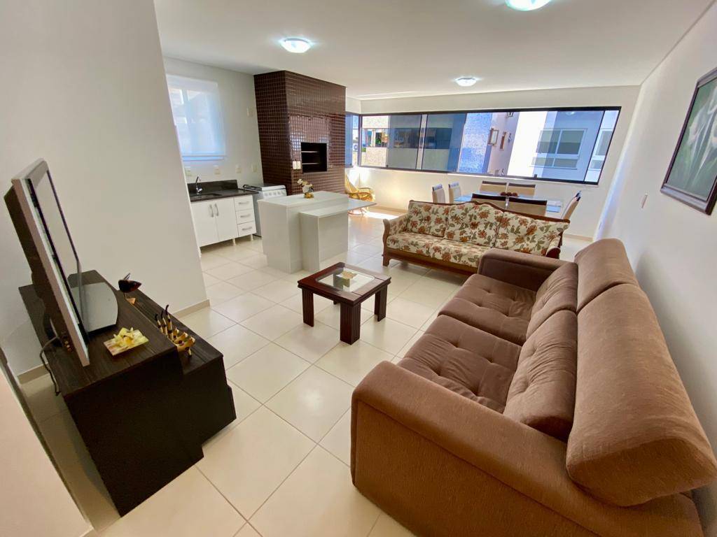 Apartamento semi mobiliado, sala de jantar e estar integradas á sacada, cozinha em conceito aberto com churrasqueira e ...