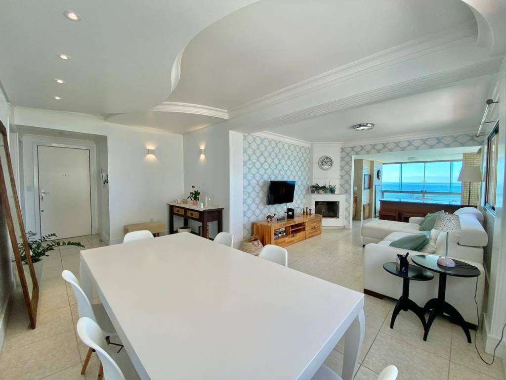 Com uma varanda generosa voltada diretamente para o mar, o apartamento oferece um amplo living integrado em três ambientes sendo sala de estar, jantar e uma área gourmet com churrasqueira de frente para a orla da praia, perfeito para momentos de lazer e descanso. Totalmente mobiliado e com luz natural em todos os cômodos, o imóvel proporciona uma sensação de amplitude e bem-estar incomparáveis.
