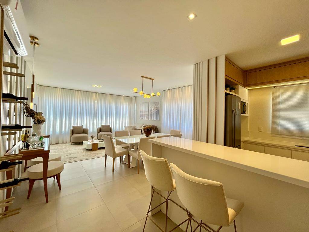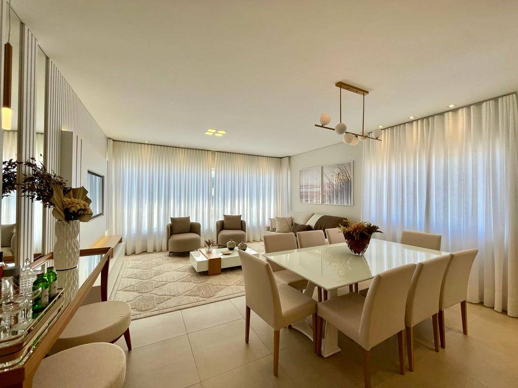 Composto por 3 dormitórios, sendo 1 suíte, banho social, lavabo, amplo living com 3 ambientes com sacada de frente integrada, cozinha americana, churrasqueira, área de serviços e 2 vagas de estacionamento.