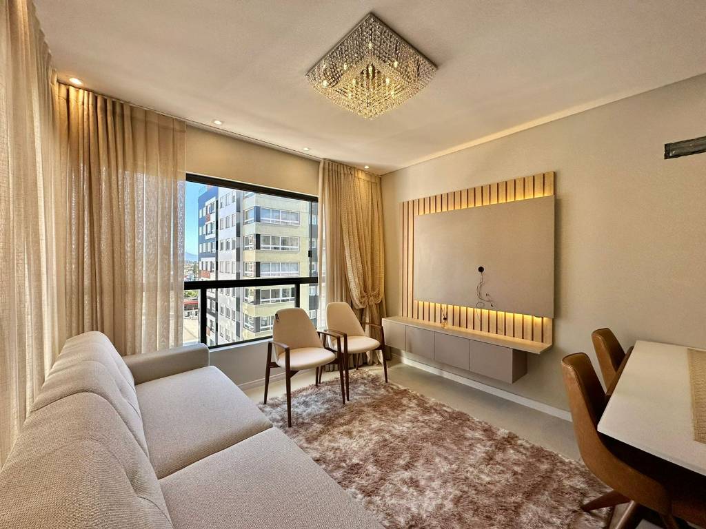 Composto por 3 dormitórios, sendo 1 suíte + banho social, cozinha em estilo americana e área de serviço separada, living amplo e muito bem dividido em dois ambientes, estar e jantar. Totalmente mobiliado e decorado e pronto para receber você e sua família, dispõe de uma sacada integrada de frente e com vista para serra.