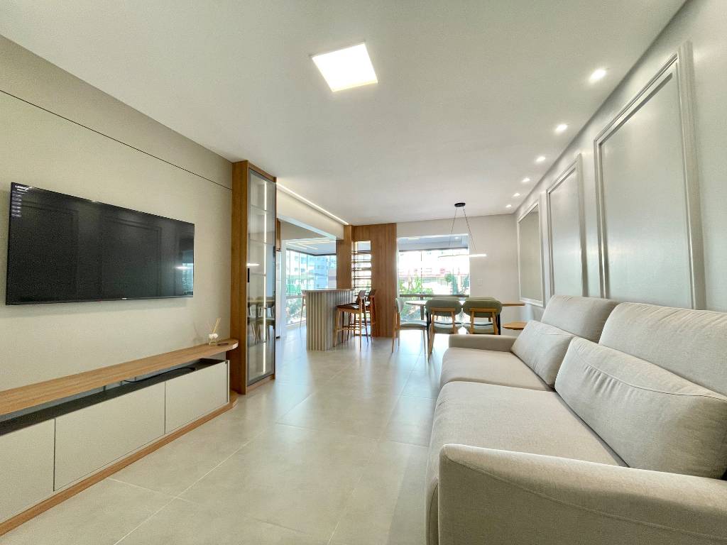Amplo apartamento a venda finamente mobiliado e decorado com sacada de frente para Avenida! Com 136m², sacadão de frente com churrasqueira, living três ambientes, cozinha americana com lavanderia separada, 3 dormitórios sendo 1 suíte, banheiro social e vaga de garagem com depósito. Localização privilegiada junto a praça Luis Bassani e poucos metros do mar. Cadastre-se e solicite sua visita!