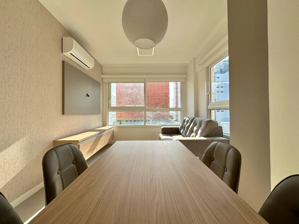 Composto por 3 dormitórios (1 suíte), living 2 ambientes, banho social, cozinha americana, churrasqueira, área de serviços integrada. Apartamento mobilado e decorado, com duas vagas de garagem com deposito!