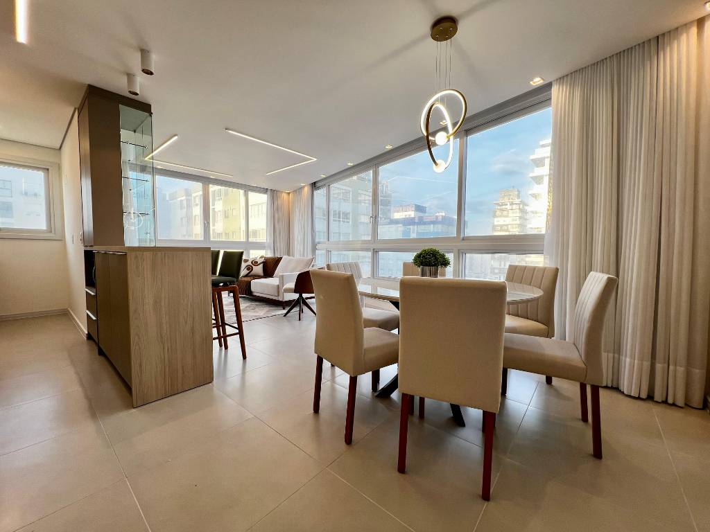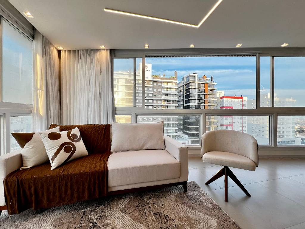 Apartamento de 130 m² no bairro Navegantes, Capão da Canoa, com três suítes, lavabo, cozinha americana e box duplo. Prédio de alto padrão entregue em 2024 pela construtora Nazalle, referência na região. Mobiliado e pronto para morar, o imóvel possui posição solar leste/norte, esquadrias em PVC e portas dos dormitórios com isolamento acústico. O condomínio oferece infraestrutura completa com dois salões de festa, bar molhado, espaço kids, sala de jogos, academia e área especial para contemplar o nascer e pôr do sol. Excelente oportunidade para quem busca conforto, segurança e lazer.