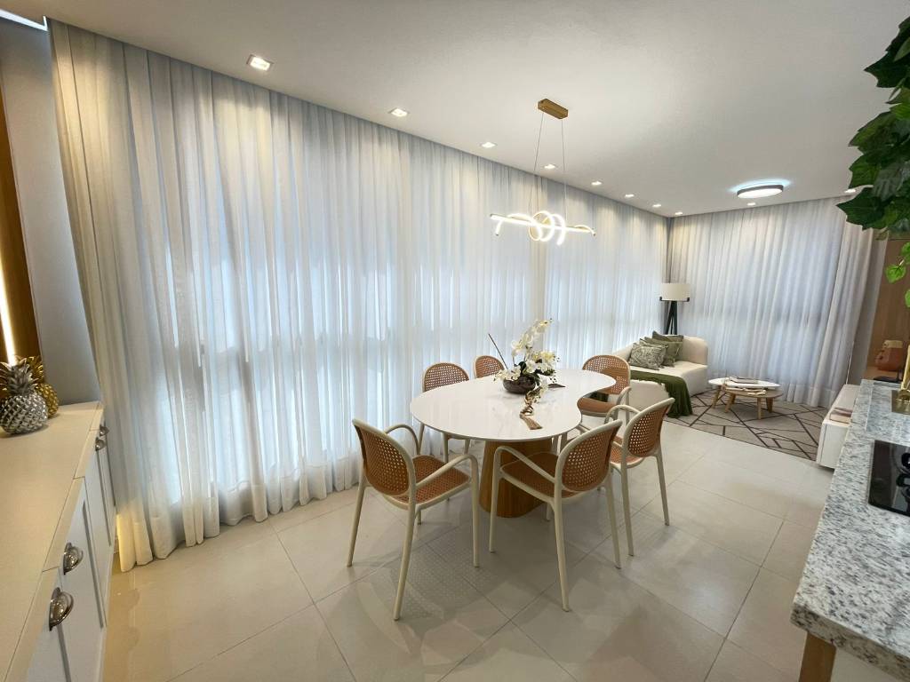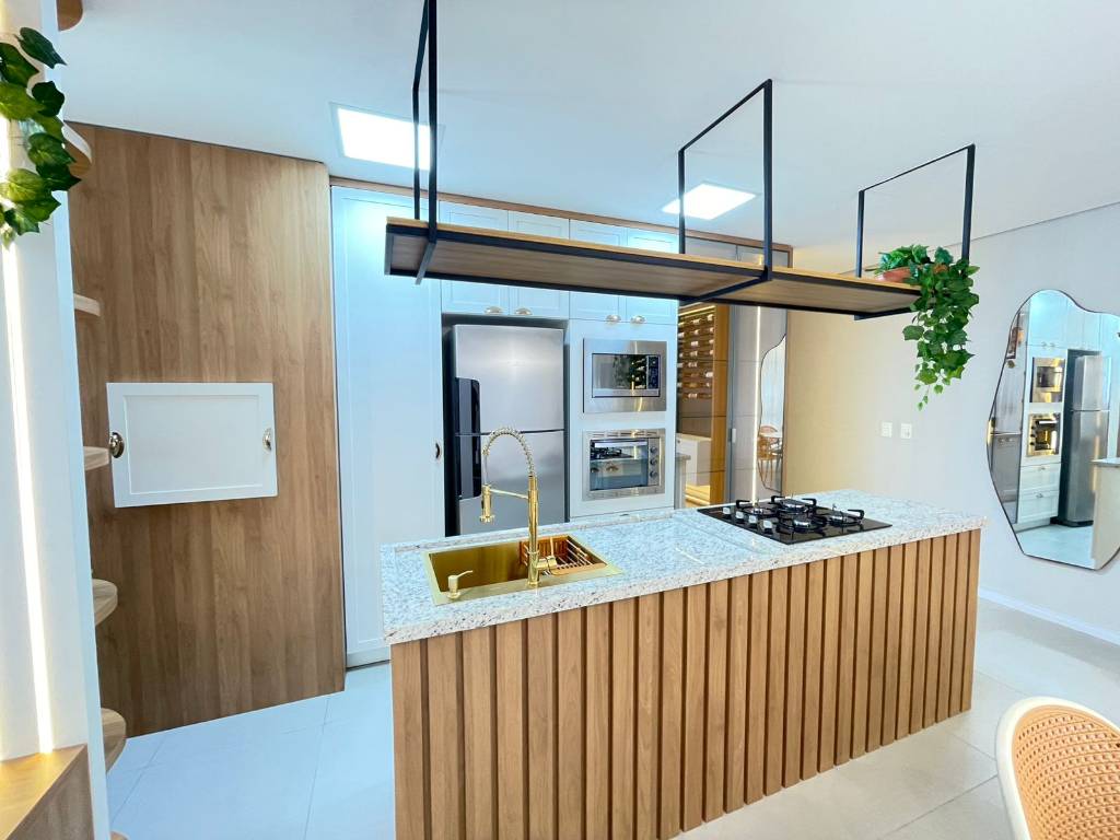 Composto por 3 suítes, lavabo, living 2 ambientes com sacada integrada, cozinha americana, churrasqueira, área de serviços e 1 vaga dupla na garagem (para 2 carros).