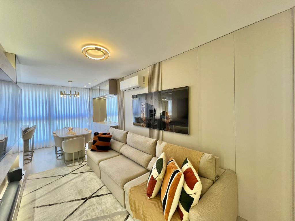 Finamente Mobiliado e Decorado no Bairro Navegantes!!! Apartamento com 03 dormitórios, sendo uma suíte + banheiro social e lavabo. Living integrado, sala de estar com jantar, cozinha aberta com bancada e área de serviço separada. Imóvel está pronto para uso, posição solar Oeste/ Sul, sol da tarde, 02 vagas de garagem para carros. Edifício novo, com infraestrutura completa de lazer, com piscina, academia e salão de festas, todos do Rooftop. Localizado no Bairro Navegantes, à 02 quadras da Beira Mar. Venha conhecer esse belo apartamento!