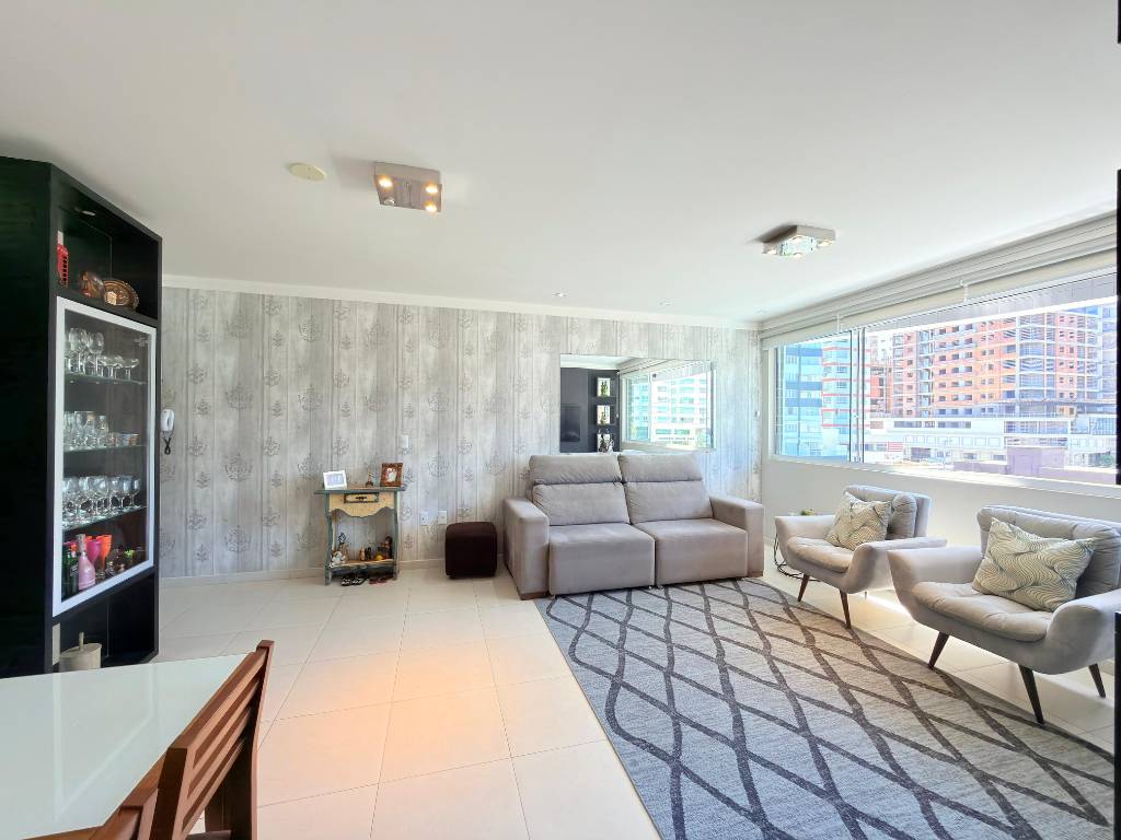 Apartamento de três dormitórios, sendo uma suíte, além de lavabo. Localizado em edifício de alto padrão construtivo, com fachada imponente, hall de entrada mobiliado e decorado, dois elevadores digitais, zelador permanente, sistema de água quente, gás central e hidrômetro individual.