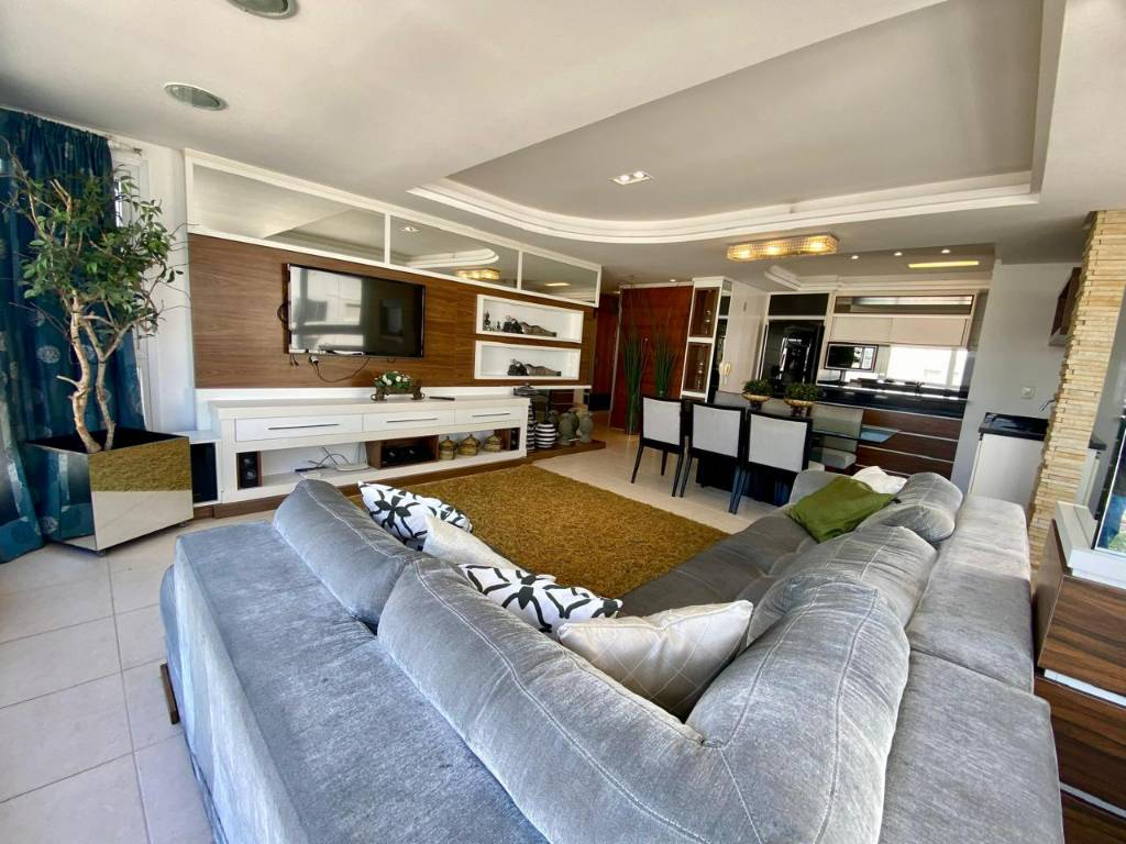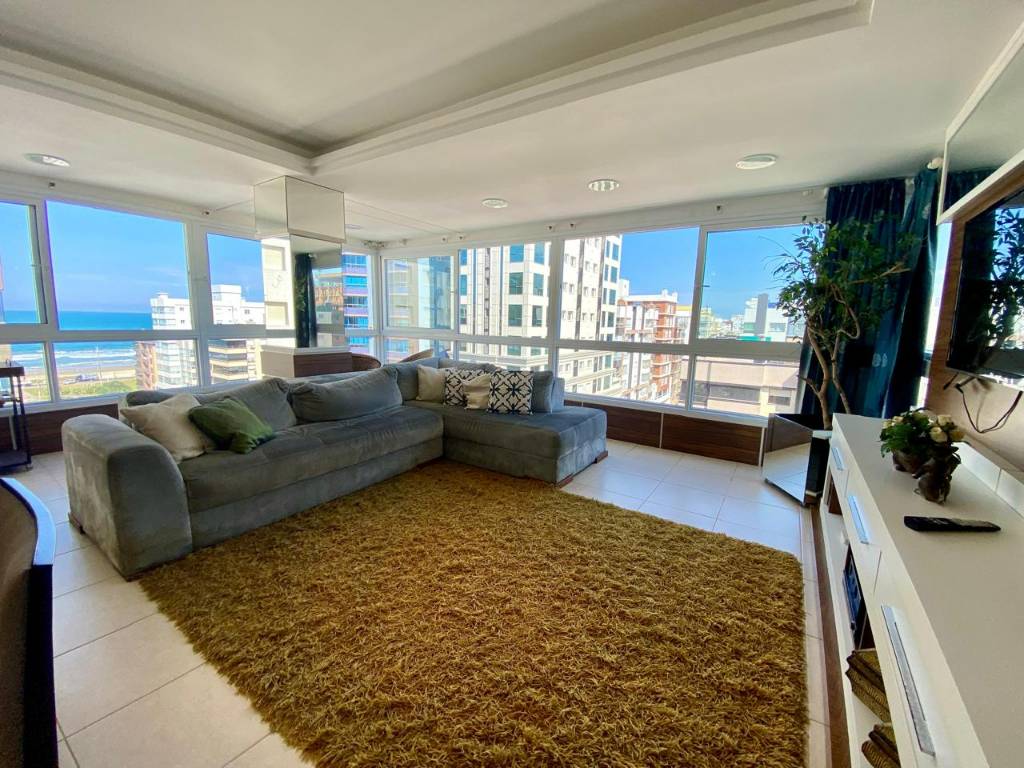 Finamente mobiliado e decorado. Pronto para ocupar, tudo feito por decoradora, altíssimo luxo e padrão de qualidade, água quente, gás central, 100 % revestido em plaquetas, esquadrias externas em PVC, hall porcelanato, edifício de esquina com padrão AA de frente para avenida com calçadão todo em pedra portuguesa e praça a beira mar, entrada principal da cidade. São quase 200 m² divididos em 3 amplos dormitórios, sendo uma suíte (todos de frente para Avenida com vista para o mar), lavabo, living em 03 ambientes, cozinha americana e área de serviço mais box de estacionamento duplo com depósito. Estuda-se ainda carro na negociação.