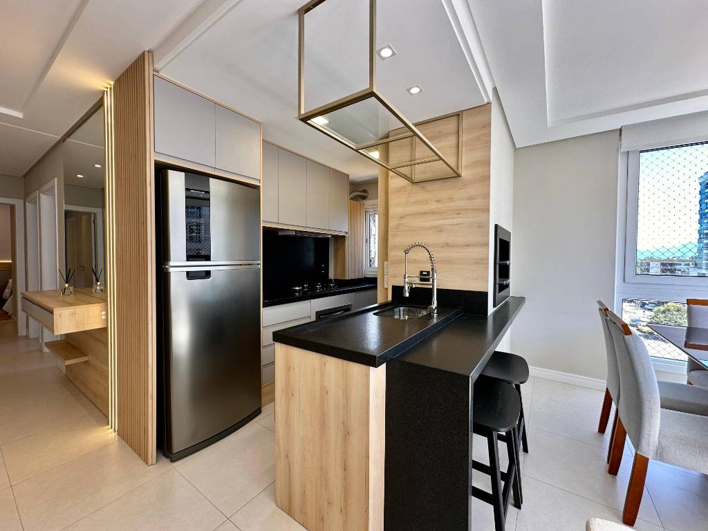 Excelente apartamento de esquina, composto por três dormitórios, sendo uma suíte. O imóvel é novo, nunca habitado, e foi finamente mobiliado e decorado. Conta com sacada integrada, living com dois ambientes (estar e jantar), cozinha no estilo americana com churrasqueira, área de serviço, lavabo e banheiro social. Possui espera para splits, sistema de água quente, gás central, hidrômetros individuais e uma vaga de garagem. O edifício é de alto padrão, com fachada 100% revestida, elevadores digitais, hall de entrada decorado, porteiro e portão eletrônicos, além de zelador permanente, oferecendo conforto e segurança aos moradores. A localização é privilegiada: situado junto à Avenida Central, principal acesso da cidade, a poucos metros do mar e próximo a todas as comodidades necessárias para o seu dia a dia. A condição de pagamento é facilitada — o proprietário estuda receber imóvel de menor valor como parte do pagamento e aceita parcelamento direto. Entre em contato com um de nossos corretores e agende sua visita.