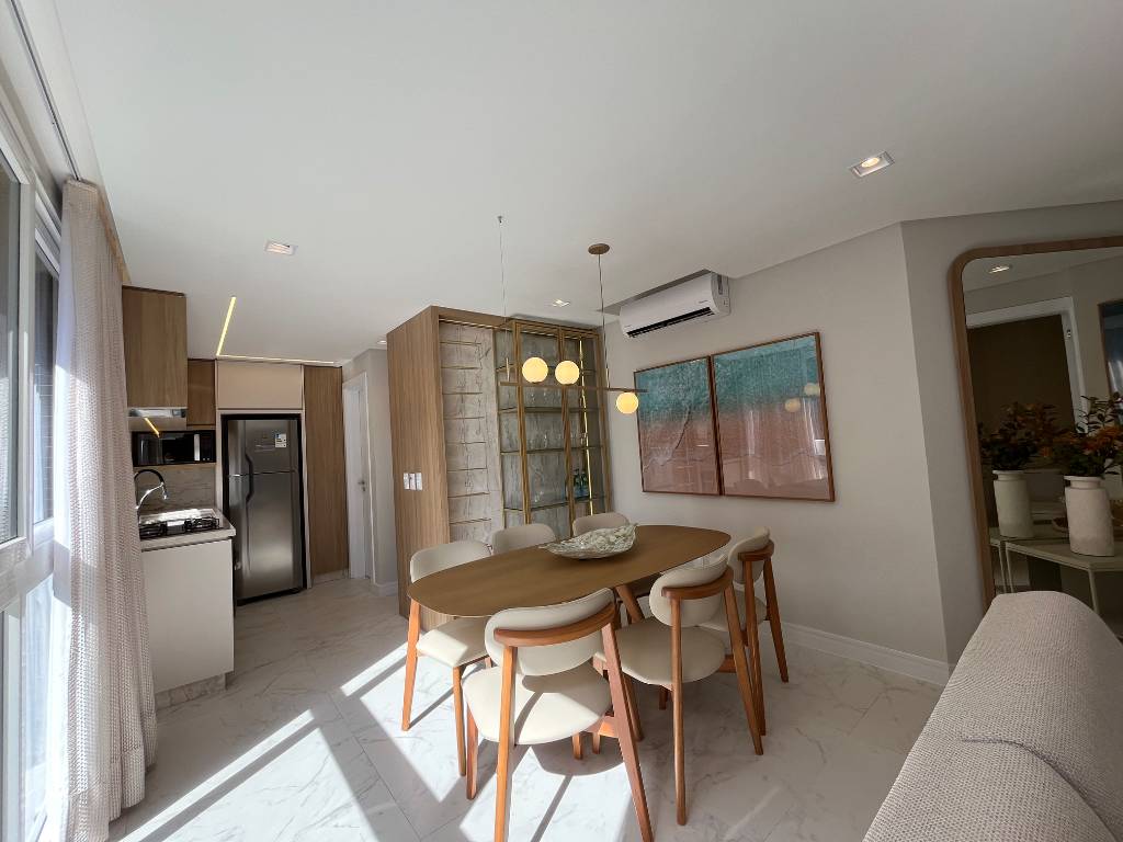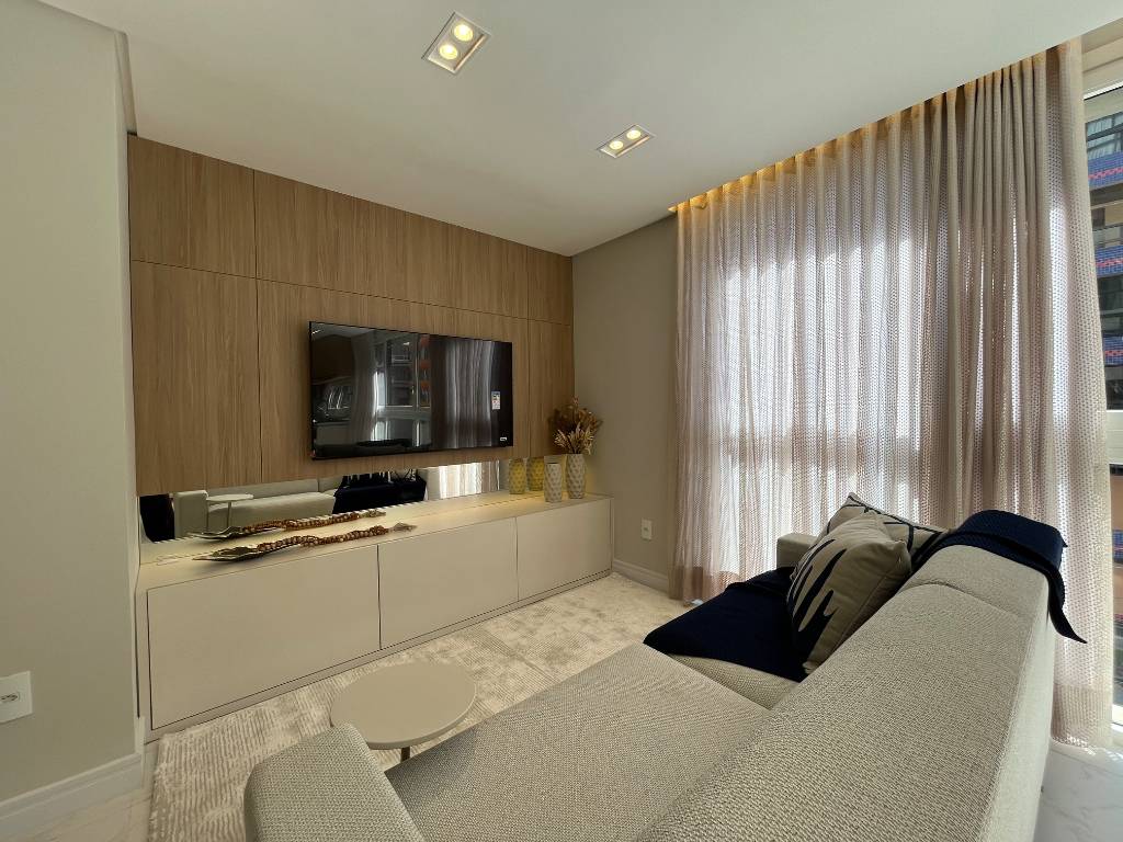 Lindo apartamento mobiliado e decorado, de frente, com living integrado e churrasqueira, lavabo, 03 dormitórios, sendo 01 suíte, além de banheiro social. Totalmente climatizado, conta ainda com terraço e box de garagem.