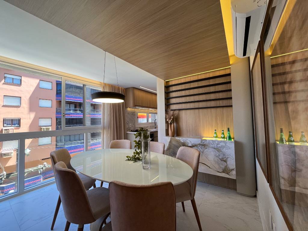 Totalmente mobiliado e decorado, com living integrado à churrasqueira, perfeito para receber amigos e familiares.