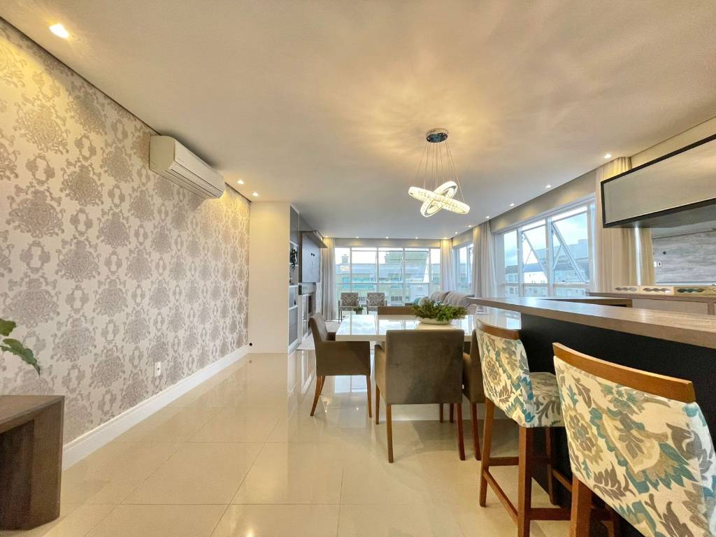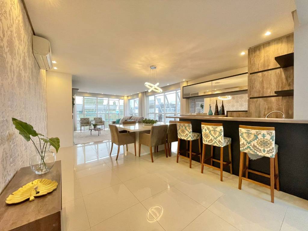 Sacada de frente para Avenida, com vista panorâmica para o Mar e Serra, janelas estilo Maxiar disponibilizando uma ótima ventilação direta, churrasqueira, amplo living de 02 ambientes, mesa de jantar, cozinha americana e área de serviço separadaconta com 03 dormitórios sendo uma suíte master, com banheira de hidromassagem e duas suítes americanas.