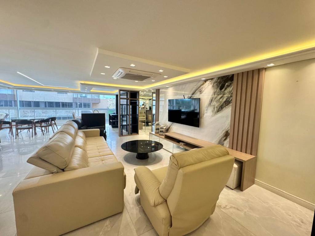 Composto por 04 dormitórios, sendo todos suítes, lavabo e banho social, o imóvel é totalmente mobiliado e decorado. Seu amplo living integrado em três ambientes conecta-se à sacada de frente com vista para o mar e espaço gourmet, proporcionando momentos únicos de convivência.