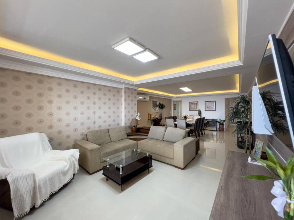 Apto de 4 dormitórios, sendo 2 suítes e uma de frente para o mar com closet, banho social, lavabo, cozinha com churrasqueira e área de serviço, banho auxiliar, amplo living 4 ambientes, todo rebaixado em gesso, sacadão de frente com outra churrasqueira, vista eterna para o mar e praça, espera ar split, tudo em porcelanato, 320m² de área total, 2 garagens e depósito. Edifício de alto luxo, na beira mar, junto a linda praça. São 2 elevadores, zel, á. quente, gás central, hall c/ pé direito duplo, fachada revest. em granito e plaquetas, piscina térmica, sauna, fitness, salão de festas, spa center/ôfuro, hidrômetro individual.