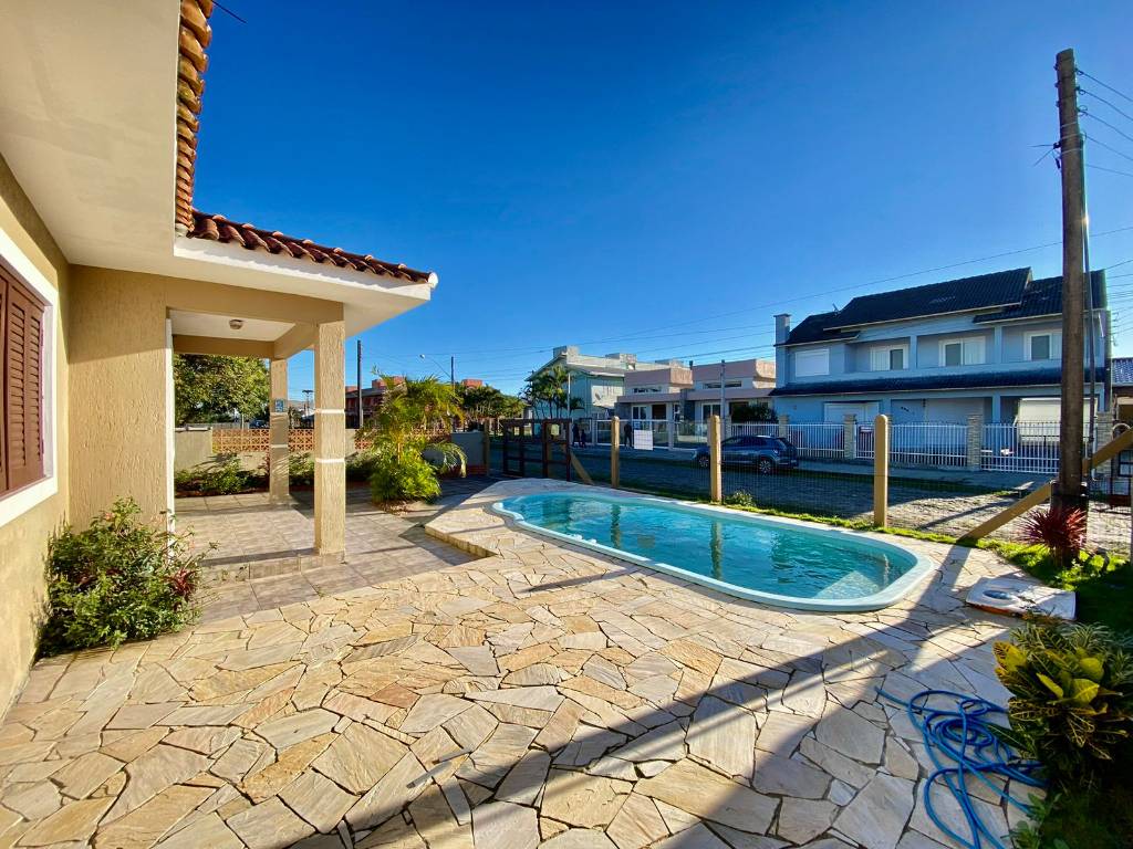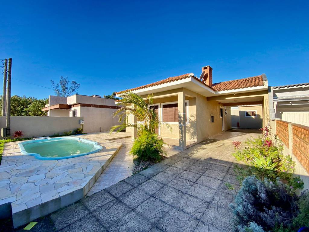 CASA NO BAIRRO ZONA NORTE!!!! Casa térrea com 03 dormitórios, sendo uma suíte + banheiro social. Living 02 ambientes, sala de estar, sala de jantar, cozinha americana, churrasqueira na área externa, pátio aos fundos, amplo depósito, vaga coberta para dois carros, piscina. Imóvel está completamente vazia, posição solar frente Oeste, sol da tarde, sol Leste Norte nos quartos, à 04 quadras da Beira Mar.