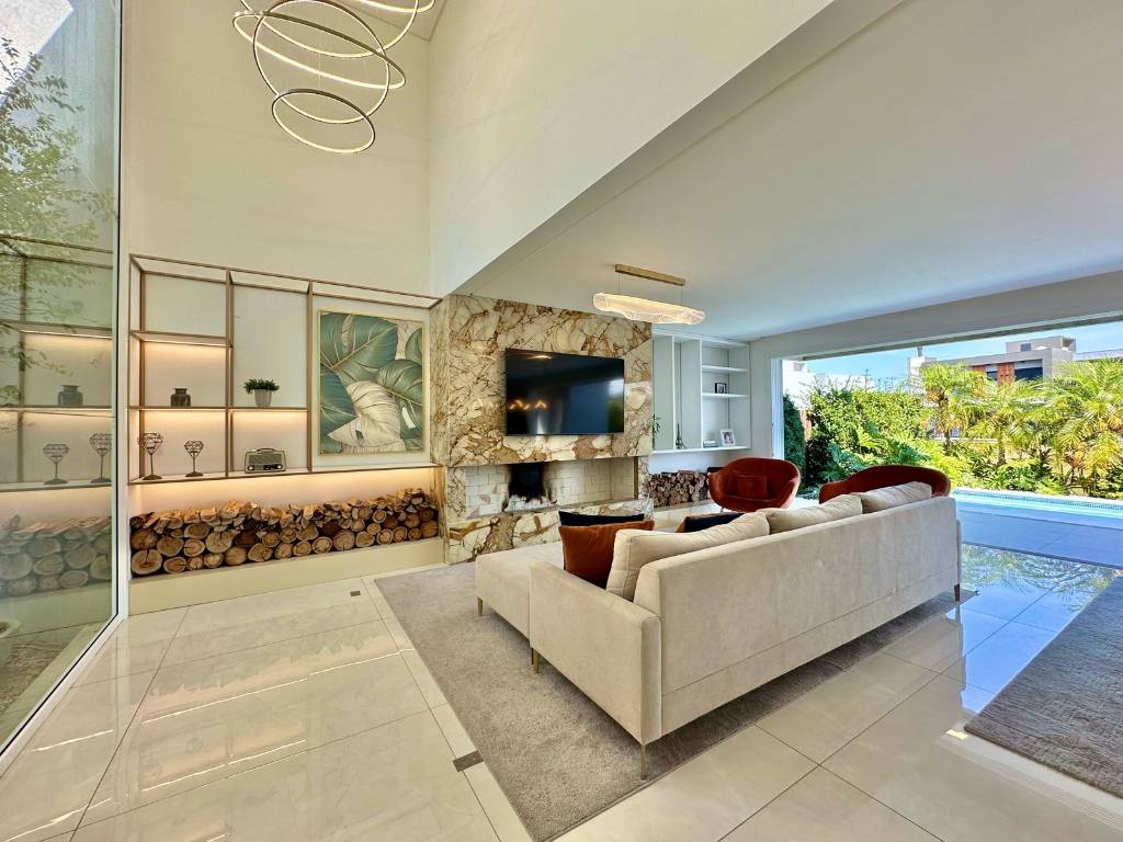 Alto padrão construtivo: piso porcelanato, esquadrias em PVC, climatizada, com água quente instalada e detalhes arquitetônicos com pedras naturais.
