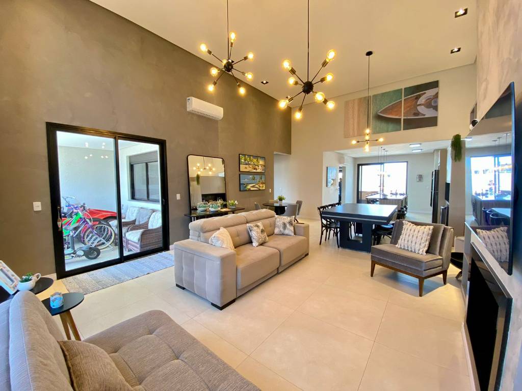 Todo requinte e exclusividade que você e sua família merece! Sabe aquela casa bem localizada, living amplo, finamente mobiliada e decorada em um condomínio de altíssimo padrão? Essa é a casa! Magnifica casa baixa com living totalmente integrado, lareira, mesa de jantar/bilhar, cozinha em ilha, espaço gourmet integrado a um excelente pátio com espaço para uma piscina ou ôfuro, esquadrias pretas, persianas automatizadas, mobiliada e decorada, acabamentos em mármore, 3 excelentes suítes individuais, fachada moderna com janelas basculantes, tudo isso em um condomínio que vai te proporcionar a segurança e o lazer que você merece, estuda prazo curto e imóvel, solicite sua visita!