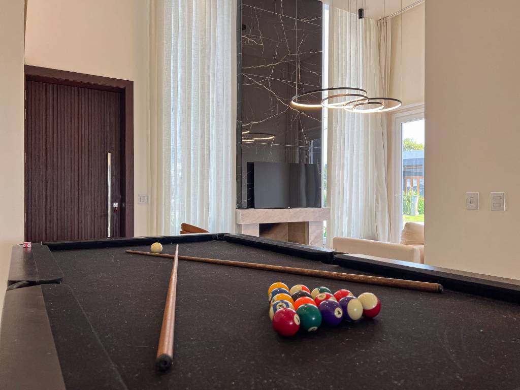 Condomínio de alto padrão BLUE, casa térrea, com excelente custo-benefício para quem busca conforto, localização privilegiada e infraestrutura completa. Com 3 suítes, lavabo e ambientes amplos, o imóvel conta com uma área total de 140 m², totalmente mobiliado e pronto para morar. A piscina em concreto e os espaços de lazer, como sala de jogos e áreas de convivência, garantem momentos de relaxamento e diversão. Um empreendimento moderno, que alia qualidade de vida, praticidade e valorização em uma das melhores localizações da região.