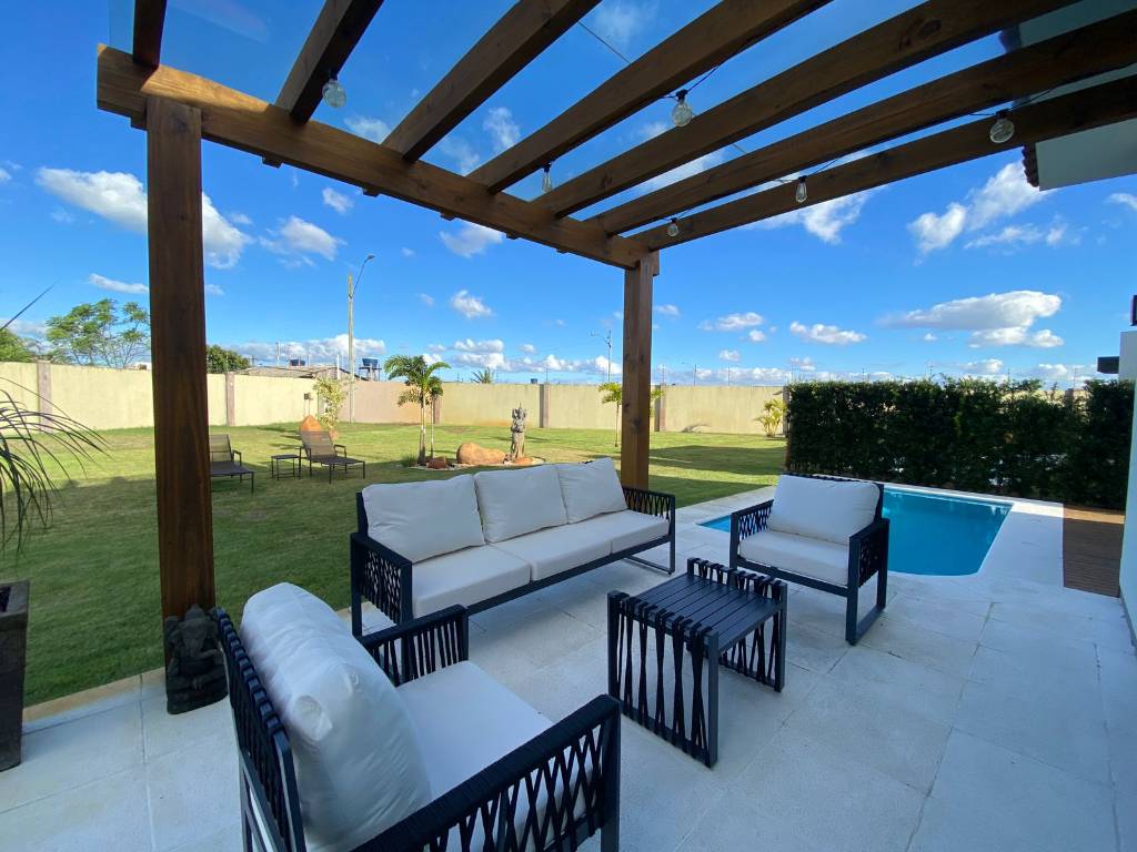 CASA À VENDA NO CONDOMÍNIO RIVIERA!!! Casa térrea de 03 dormitórios, sendo 03 suítes independentes + lavabo social, amplo living integrado, sala de estar com lareira, sala de jantar, cozinha aberta com espaço gourmet, bancada, churrasqueira, área de serviço separada, amplo pátio com piscina, ampla área verde aos fundos do lote. A casa está Mobiliada e Equipada, posição solar Oeste/ Norte, ótima iluminação e ventilação, 170 m² de área construída, 02 vagas cobertas para carro. Localizado no Condomínio Riviera!!!