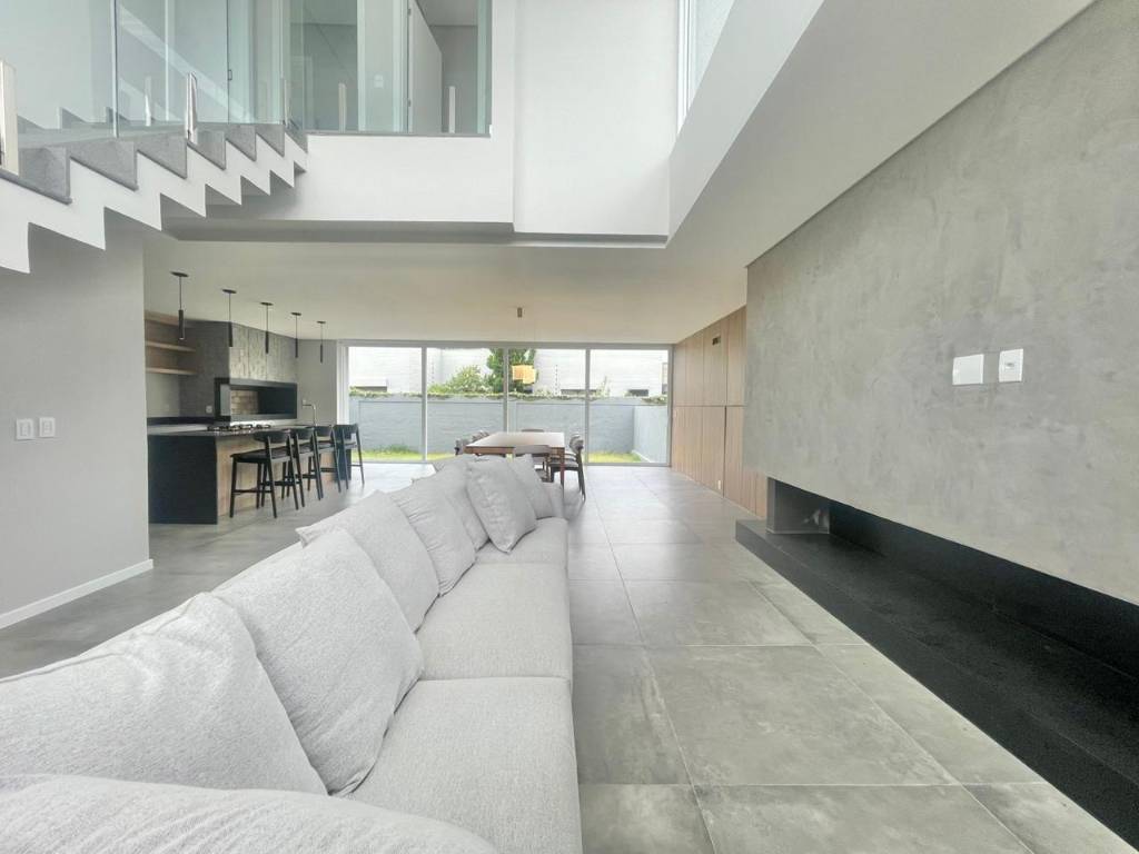 A área social é um grande destaque, com sala de estar e jantar integradas, lareira que valoriza o ambiente e traz aconchego nos dias mais frios, além de uma cozinha moderna com ilha, perfeita para quem gosta de receber.