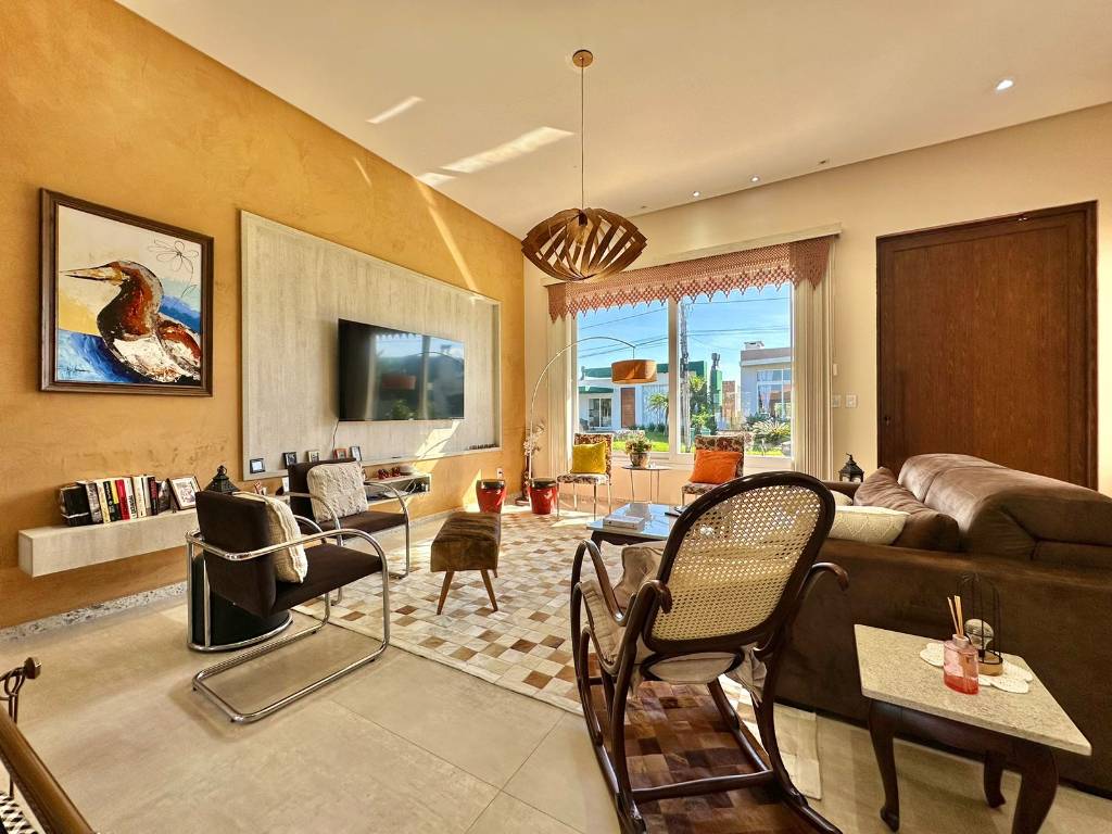 Casa térrea com 180m², composta por 03 suítes independentes, lavabo, living estar e jantar, espaço gourmet com churrasqueira, cozinha estilo americana, lavanderia separada, paisagismo, mobiliada e equipada pronta para uso, esquadrias em pvc evaga de