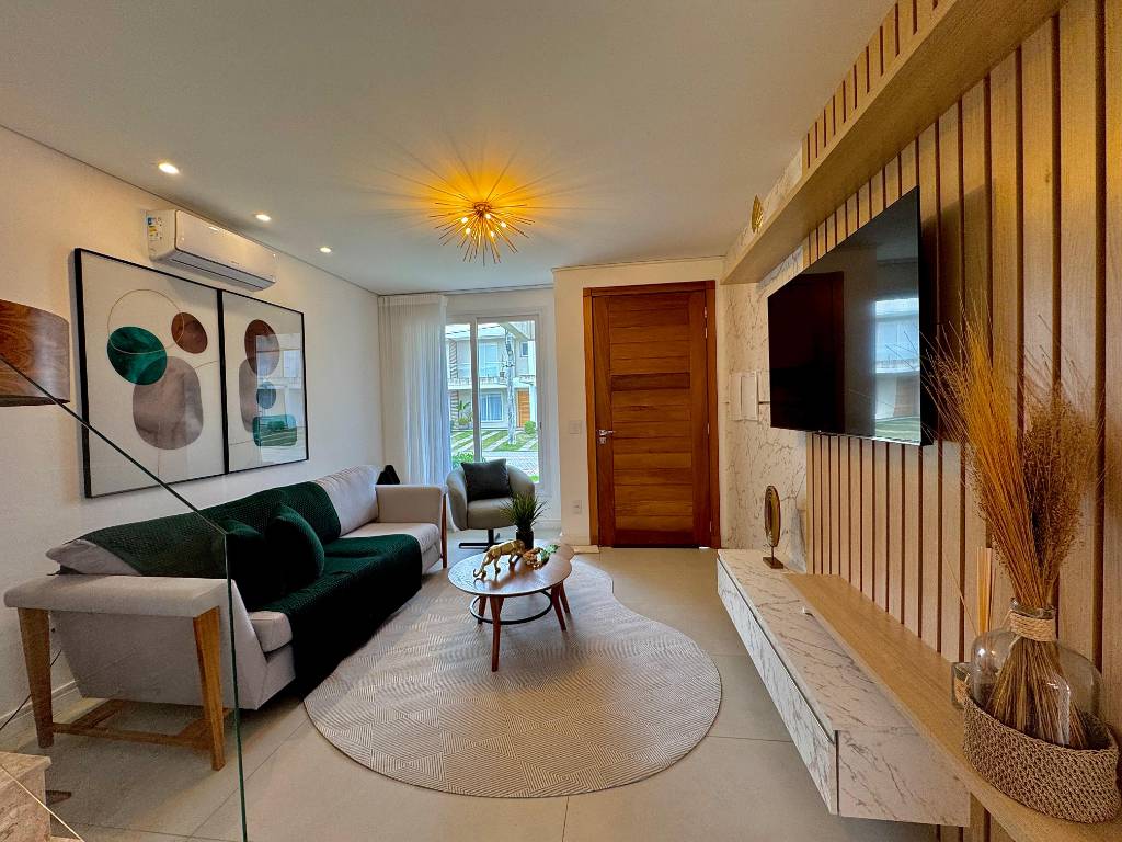 A casa conta com três quartos amplos e bem iluminados, sala de estar integrada à cozinha, ambientes climatizados, área gourmet mobiliada e vaga de garagem.