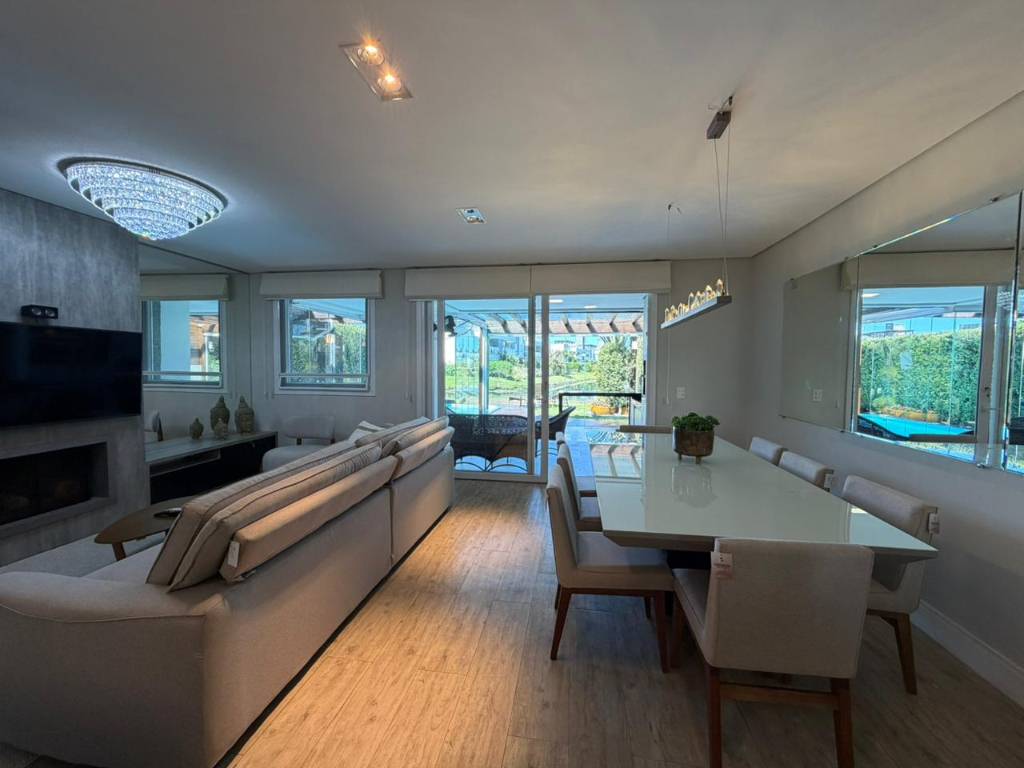 Na área externa, o destaque fica por conta do espaço gourmet integrado à piscina, posicionado nos fundos do lago do condomínio, proporcionando uma vista permanente e um cenário perfeito para momentos de descanso e confraternização. A casa encontra-se completamente equipada, pronta para morar ou aproveitar desde o primeiro dia.