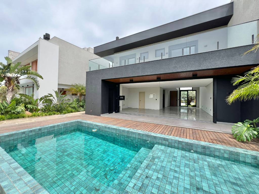 SOBRADO À VENDA NO CONDOMÍNIO CAPÃO ILHAS RESORT EM CAPÃO DA CANOA! Casa com 04 suítes individuais, parte térrea compõe por um amplo living, sala de estar, sala de jantar, cozinha conceito aberto com bancada, churrasqueira, área de serviço separada, amplo pátio aos fundos com piscina, lavabo interno e externo e uma suíte térrea. Parte superior contamos com 03 suítes, todas com sacada. Imóvel novo, nunca habitado, vaga coberta para 02 carros, 260 m² de área construída, frente Oeste, fundos lago e ótima padrão construtivo. Localizado no Condomínio Capão Ilhas Resort, próximo a Infraestrutura de lazer!!!