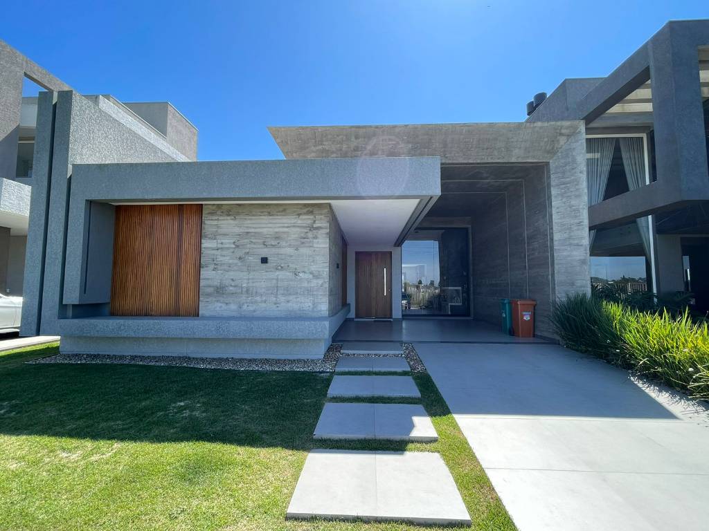 Venha morar no Condomínio Capão Ilhas Resort em Capão da Canoa, excelente casa térrea, com o seu estilo contemporâneo, possui quatro suítes, todas independentes e ventilação direta, o seu living com pe direito alto em 100% rebaixo em gesso, linda lareira, integrando a sala de estar e jantar, cozinha americana com espaço gourmet e área de serviço, pátio com paisagismo na frente e fundos com vista eterna para o lago, estacionamento para até dois carros! Sem falar que o condomínio oferece infraestrutura completa, com apoio a beira mar e acesso a lagoa dos Quadros, para práticas de esportes náuticos!