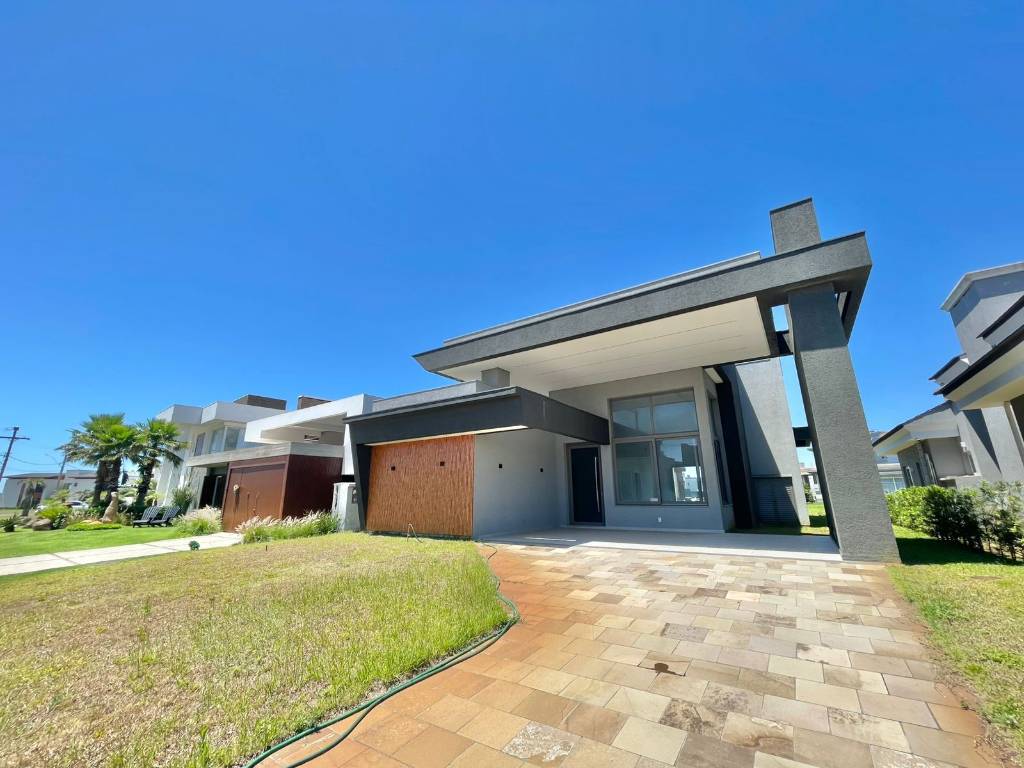 Casa térrea alto padrão, nunca habitada, beira de lago, no condomínio fechado Costa Serena, localizado à Beira Mar de Capão Novo, em Capão da Canoa! Composta por 4 amplas suítes, lavabo, amplo living em 3 ambientes com pé direito duplo, cozinha americana, espaço gourmet com churrasqueira, área de serviços e abrigo para até 2 carros. São aproximadamente 220m² de área construída, alto padrão de acabamentos, piso porcelanato, rebaixada em gesso, esquadrias em PVC, esperas para splits, água quente, energia solar e para carregamento de veículo elétrico, amplo pátio privativo com irrigação automatizada, pronta para veranear/morar! O 1º Condomínio fechado de terrenos a beira mar de Capão da Canoa, 100% dos lotes não tem vizinhos de fundos. No Costa Serena, ninguém precisa pegar o carro para ir à praia, um lindo boulevard atravessa o condomínio e chega na praia, infraestrutura completa, clube conceito com 1.424m², amplo solarium e hall coberto, piscina com deck molhado e borda e fundo infinito a beira lago, fitness center, espaço kids temático, espaço gourmet com estar e lareira. Agende sua visita agora mesmo!