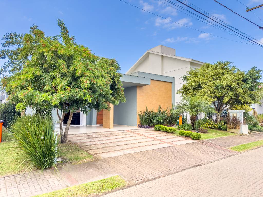 Projeto contemporâneo com 221,37 m², distribuídos em 4 dormitórios (sendo 3 suítes), lavabo, banho social, living 3 ambientes com pé direito elevado, cozinha americana com churrasqueira, varanda e abrigo para 2 veículos.