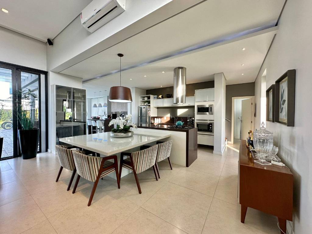 Venha conhecer esse incrível sobrado composto por 4 suítes individuais mais banheiro social no térreo. Ainda possui lavanderia separada, uma cozinha no estilo americana, living amplo, totalmente mobiliado, decorado e equipado. Climatizado, água quente, espaço gourmet, piscina aquecida. Possui espaço para 4 carros.