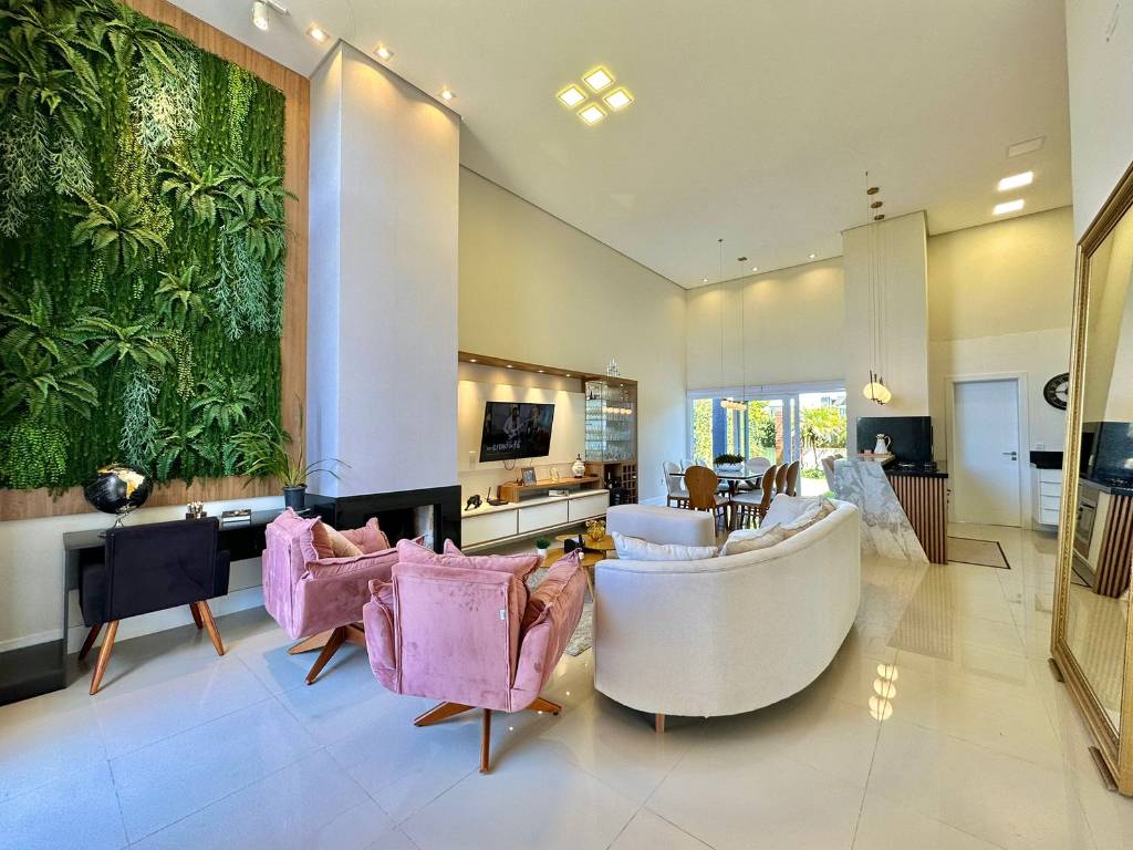 Casa em frente a área verde, mobiliada e decorada com pé direito dublo com 180m2 , 4 suítes sendo 2 americanas , lavabo , living integrado, churrasqueira , esquadrias em pvc, climatizada.