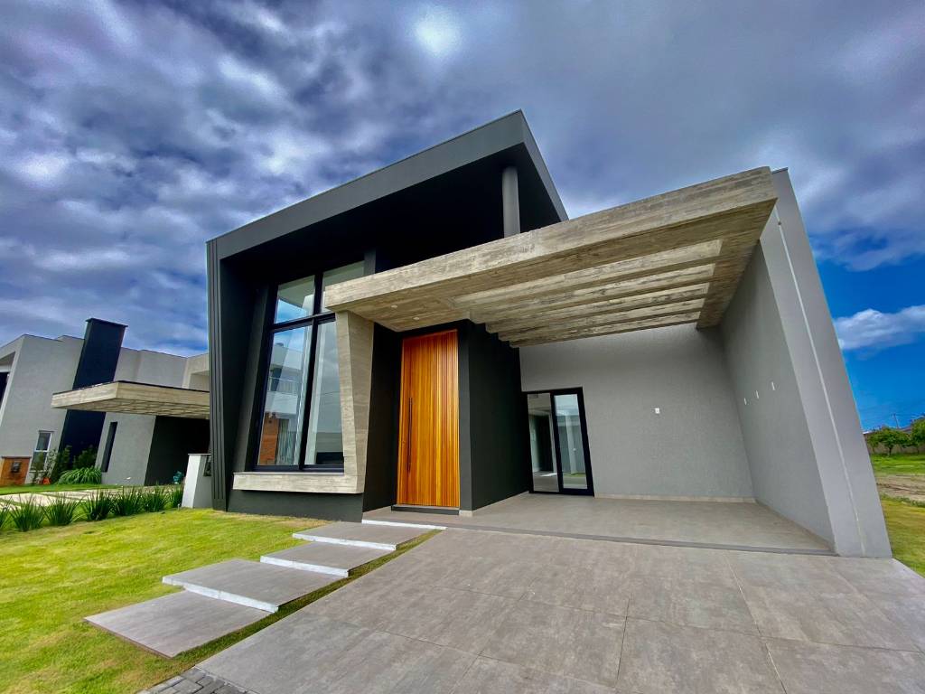 Casa térrea no Condomínio Dubai, uma das melhores infra estruturas do litoral com paradouro a beira mar de Capão da Canoa. Casa nova e nunca habitada, com 182m², composta por 04 suítes independentes, lavabo, amplo living com pé direito alto todo integrado com sala de jantar, sala de estar, cozinha americana, jardim de inverno, churrasqueira e lareira. Fino acabamento com piso em porcelanato, esperas para split, esquadrias em pvc automatizadas, esquadrias do living em pvc preto, fachada em concreto aparente.