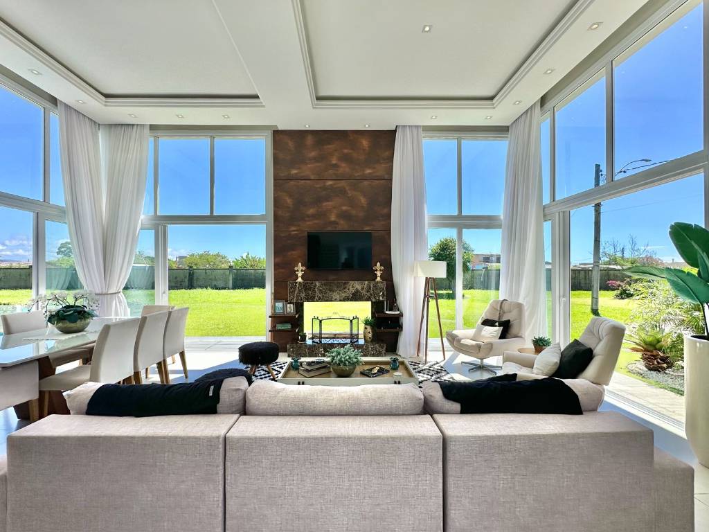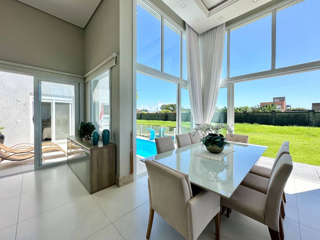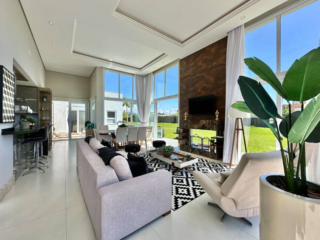 195m² de alto padrão, Living amplo muito bem iluminado e ventilado naturalmente, Piscina aquecida, São 4 suítes sendo 2 americanas e 1 suíte master com closet e hidromassagem, casa com Esquadrias em pvc, Persianas automatizadas, Piscina aquecida Área de serviço separada, tudo isso em um condomínio com infra estrutura completa, estuda propostas com prazo/imóvel