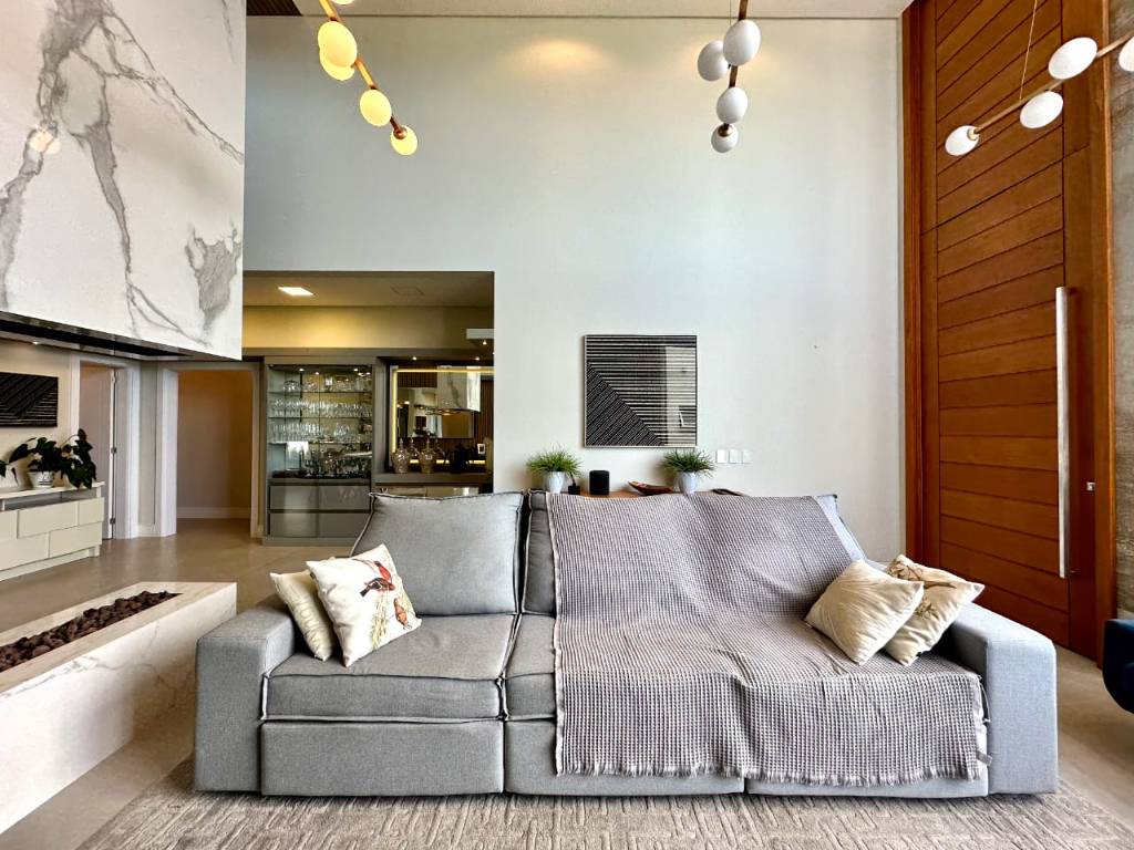 O imóvel conta com 4 suítes espaçosas, além de lavabo, e está totalmente mobiliado e decorado com bom gosto, pronta para uso imediato. A integração dos ambientes, aliada ao acabamento impecável, proporciona uma experiência de morar com estilo e qualidade.